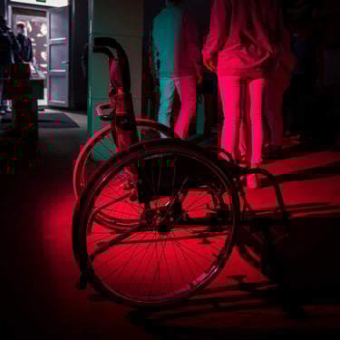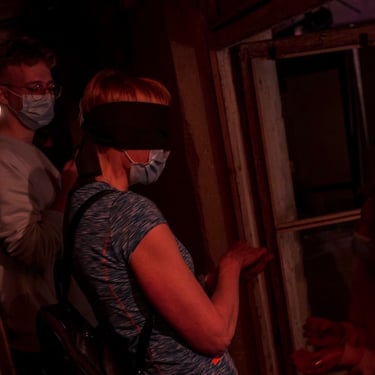 Tai kelionė teatre įrengtu taku, kuris imituoja skirtingus aplinkos suvokimo būdus, suteikia galimybę patirti kasdienę situaciją kitaip, nei jums lig šiol buvo įprasta arba taip, kaip ją patiria kiti žmonės.